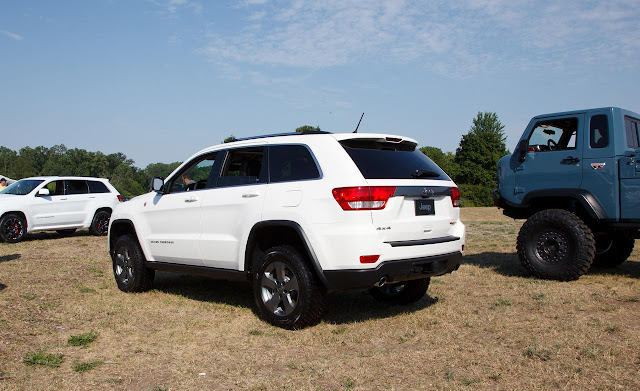 The first is a production version of the Grand Cherokee Trail Hawk SUV first shown in concept form at the latest developments of the Easter Jeep Safari in Moab, UtahA bumper black cap with red accent stripe dominates the front, while the tires 18-inch alloy, black headlight buckets, gray bar grille, taillights and signature badging complete the visual enhancements.
